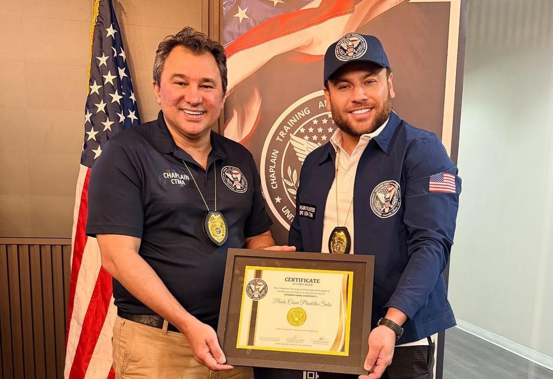 Em um momento marcado por fé, propósito e reconhecimento ministerial, Paulo Cesar Pradella Sales foi oficialmente nomeado Capelão Honorário nos Estados Unidos pela Chaplain Training and Management Agency (CTMA), instituição sediada em Orlando, Flórida (EUA), referência internacional na formação e gestão de capelães.